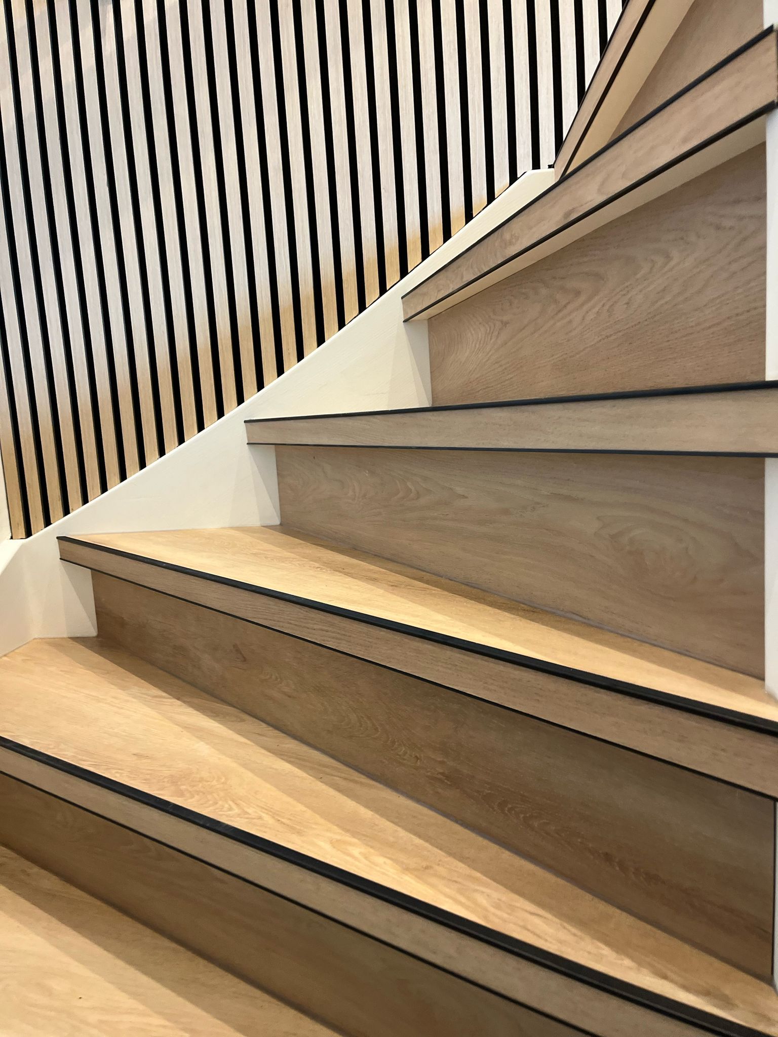 Kies je voor een echte traprenovatie, dan transformeren wij jouw trap tot een strakke en duurzame blikvanger. Bij SK Woningstoffering bekleden we de trap met hoogwaardig PVC, gecombineerd met een exclusieve trapstrip voor een afgewerkt en luxe resultaat.