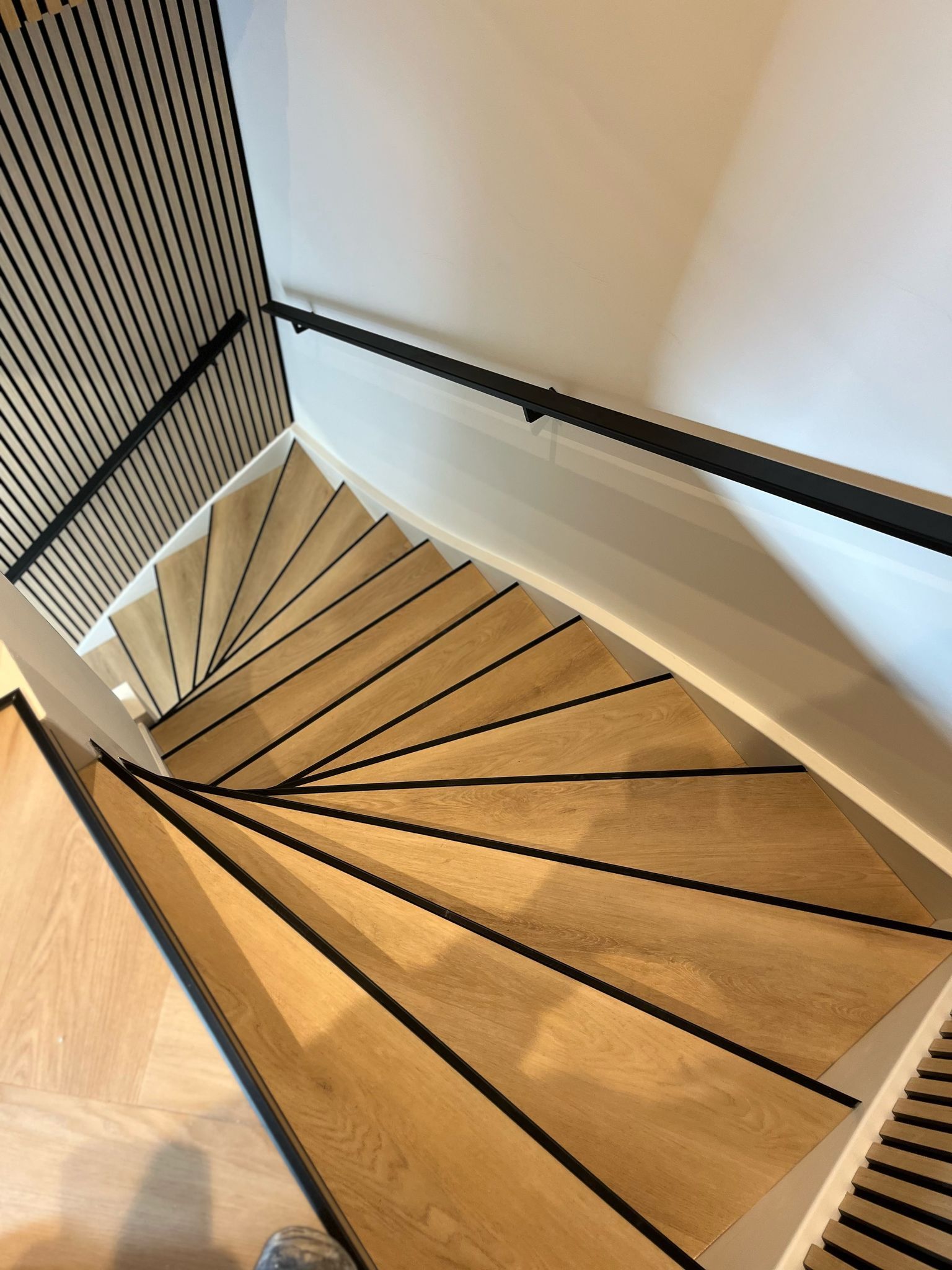 Onze vakmensen snijden de trap scherp en nauwkeurig aan alle kanten, zodat elk detail perfect aansluit. Het resultaat is een strakke, moderne trap die zowel stijlvol als functioneel is.